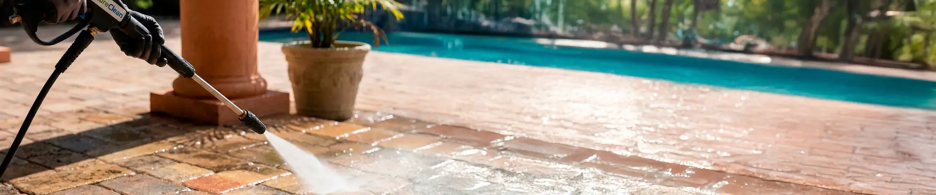 Once the rust is neutralized, we utilize a hot-water rinse at under 800 PSI. The thermal energy helps emulsify secondary mineral deposits, while the low pressure ensures we do not chip architectural paint or damage delicate screen splines.Once the joints are clean and dry, we install Polymeric Sand. This advanced material hardens to create a flexible “joint” that resists weed growth, prevents insect mining, and locks the pavers into a singular, stable structural unit.
